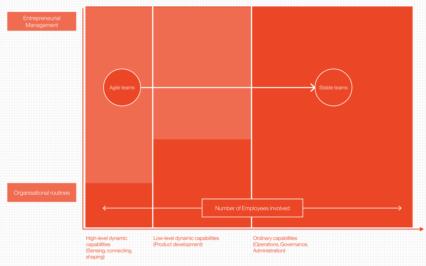 Common-capability teams, which build shared tools, platforms, and processes that make learning and delivery easier.